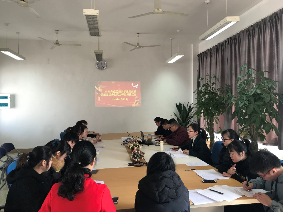 1月23日,管理系學生黨支部2018年度組織生活會在系部會議室召開。支部教師黨員與學生黨員參加了會議,會議由李丹同志(代支部書記揭金花同志)主持。