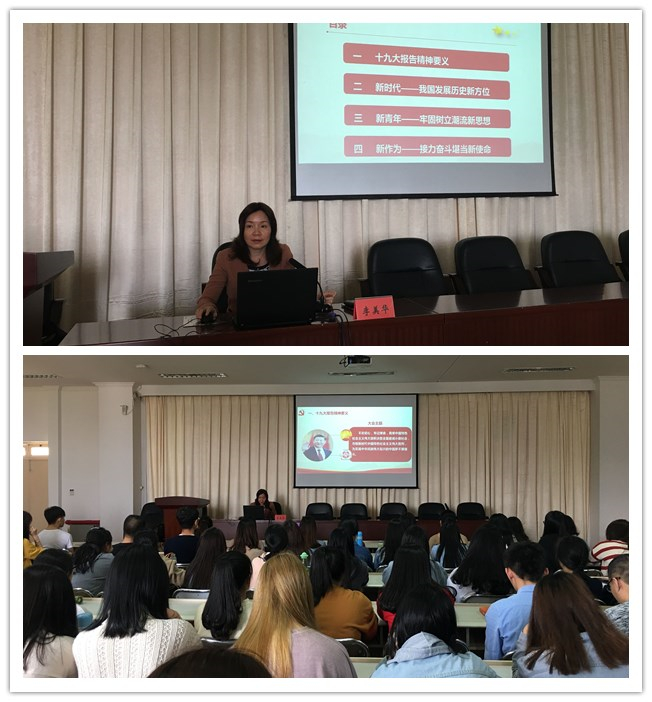 4月17日下午,學院紀委李美華書記在行政樓六樓為健康管理系黨員、入黨積極分子講授以“新時代 新青年”為主題的學習十九大精神專題黨課。