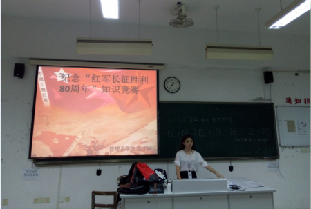 為追憶光輝歲月,傳承長征精神。于10月25日晚7點30分,管理系團總支在教學樓311教室舉辦以“光榮歷史,銘刻心中”為主題的知識競賽。120名選手參加競賽活動。