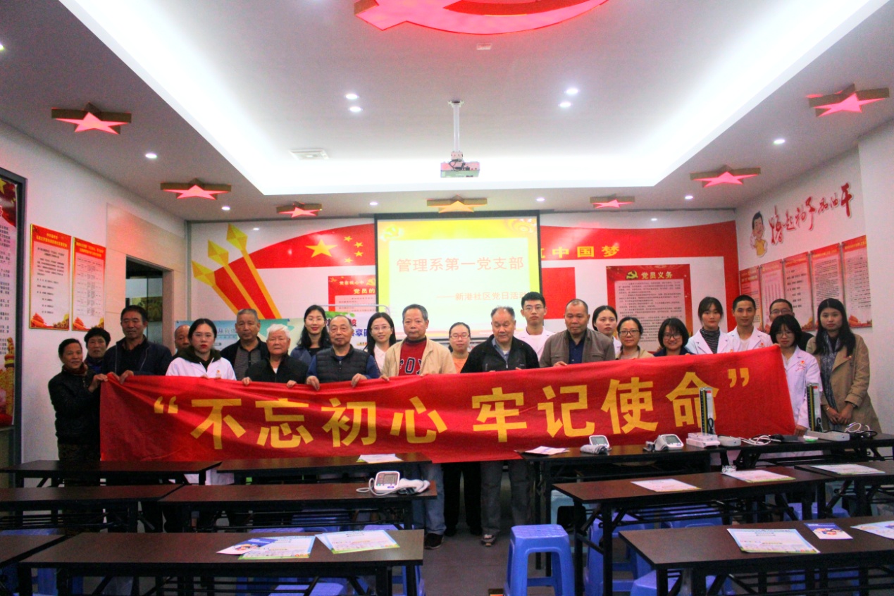 為貫徹落實“不忘初心、牢記使命”主題教育工作的部署要求,響應2019年全民終身學習活動周的精神,引導師生黨員將理論學習和社會服務緊密結合,增強使命意識和責任擔當,推動全民終身學習,助力基層社區“健康中國”建設,2019年11月28日下午,管理系第一黨支部副書記、預防醫學教研室主任揭金花帶領支部教師黨員及部分學生黨員、入黨積極分子赴馬尾區羅星街道新港社區開展“志愿服務社區行”主題黨日活動。