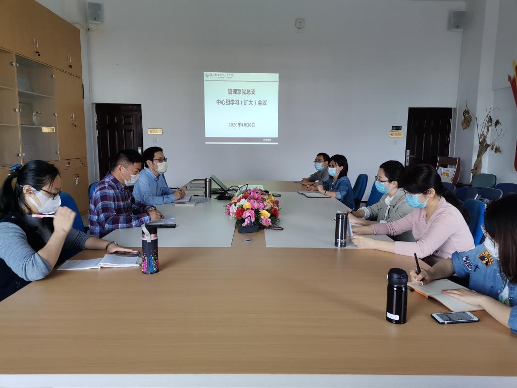 4月30日上午,管理系黨總支召開中心組學習(擴大)會議,學習《黨委(黨組)落實全面從嚴治黨主體責任規定》《關于新冠肺炎疫情期間暫停恢復大型體育活動和聚集性活動的通知》《關于繼續加強科學精準防控積極做好復工復產復學人員健康管理工作的通知》《關于印發<教育系統應對學校突發新冠肺炎疫情處置預案>的通知》《關于做好重點人群管理服務等有關工作的通知》。會議由管理系黨總支書記黃曦同志主持。