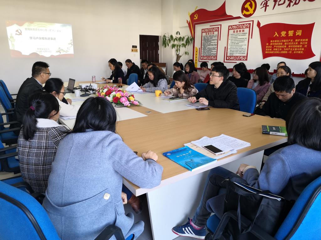 12月12日下午,管理系黨總支召開中心組學(xué)習(xí)(擴(kuò)大)會(huì)議,學(xué)習(xí)“時(shí)代楷模”盧永根先進(jìn)事跡,總結(jié)學(xué)習(xí)《中國共產(chǎn)黨宣傳工作條例》。會(huì)議由管理系黨總支書記艾松軍同志主持。