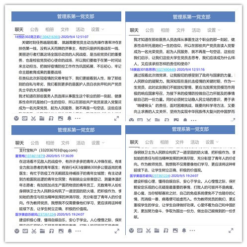 觀看后,大家紛紛發(fā)表感想。夏雪梅老師表示,在這場看不見敵人的戰(zhàn)疫中,有許許多多的青年人沖鋒在前。有竭盡全力救治患者的青年醫(yī)生;有騎行4天3夜輾轉(zhuǎn)300多公里返崗的青年女醫(yī)生;有忙于防疫工作無暇顧及待哺孩子的青年女城管;有主動請纓到方艙醫(yī)院巡邏的青年女民警;有兢兢業(yè)業(yè)排查登記、測量體溫的青年志愿者;有加班加點生產(chǎn)醫(yī)藥物資的青年員工,無數(shù)青年人紛紛化身鋼鐵衛(wèi)士為人民群眾構筑了一道堅固的防火墻,把積極作為、慎終如始的責任與擔當精神發(fā)揮得淋漓盡致,充分彰顯了青年人的價值取向。作為教師黨員,我想我不僅需要向他們學習,更應該將這種精神延續(xù)下去,讓學生樹立正確、積極的價值觀。蘇碧鳳老師表示,建設積極心理,懂得自娛自樂,安心于學業(yè)。人心惶惶之際,保持一顆安定樂觀的心無疑是最重要的事情,打敗人的可能并不是病魔,而是心魔,當你郁郁寡歡之時,自己的免疫系統(tǒng)便免不了也隨你的心情,而消極一番,病毒便可趁虛而入。作為教師黨員的我們,更應該重視學生的學業(yè),讓學生自律做好功課。心里懷著為自己和中國的明天,更加努力奮斗,爭取為國出一份力,做出自己能做到的一份貢獻。預備黨員高正茹同學表示,關鍵時刻任務越是險重,就越需要黨員主動當先鋒作表率沖在救死扶傷第一線。在此次新冠疫情的災難考驗下,我們更能看到人性,除了那些個別的自私與卑劣,我們看到更多的是醫(yī)護人員白衣執(zhí)甲和共產(chǎn)黨員身先士卒的大無畏精神。我才知道在那些醫(yī)務人員選擇從事醫(yī)生這個職業(yè)的那一刻起,健康所系性命所托是她們一生的信仰,成為一名光榮黨員,為人民服務,就不再是一句空話。這些應該給我們啟示,讓我們這些大學生黨員去思考,我們應該成為什么樣的人,又應該承擔怎樣的責任和使命?預備黨員陳思思同學表示,通過觀看此次微黨課,讓我感受到了政府與國家的力量,以及人民群眾的凝聚力。我深知現(xiàn)在是抗擊疫情的關鍵時期,作為一名學生黨員,此時此刻我們不能放松警惕,更應當發(fā)揮黨員模范作用,積極響應國家號召,為接下來的疫情防控做自己力所能及的事情,貢獻自己的一份力量。同時必須樹立站穩(wěn)人民立場的意識,勇于承擔起“啃硬骨頭”的責任,面對困難挑戰(zhàn),既要向科學尋方法,又要有胸懷向上求善的人文關懷,堅持為實現(xiàn)中華民族偉大復興的中國夢而不懈奮斗。