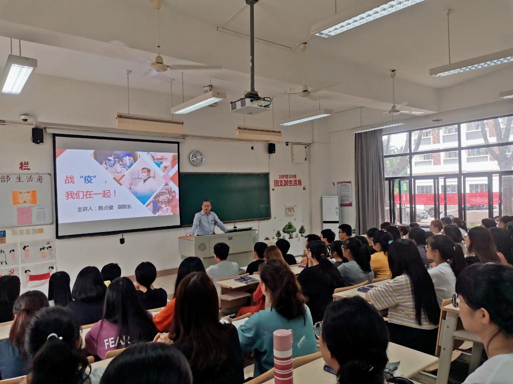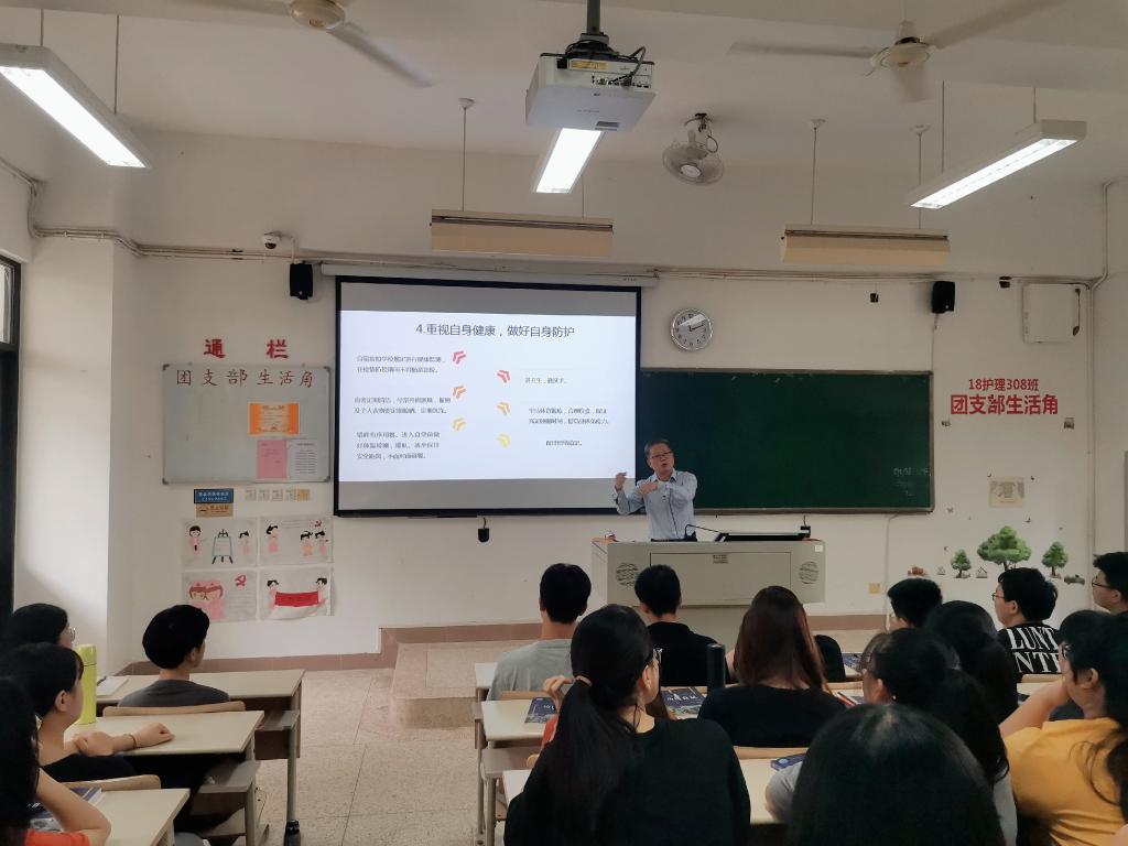9月22日上午,學院領導在教學樓115為學生講授返校第一課《戰(zhàn)疫,我們在一起》。本次返校第一課由黨委委員、副院長陳貞健主講,管理系2019級健康管理專業(yè)學生參加現(xiàn)場授課。