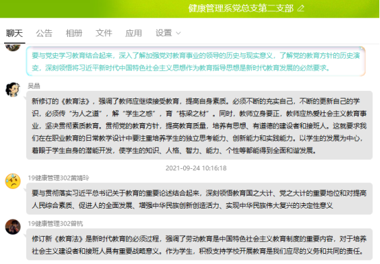 9月24日,健康管理系黨總支第二支部組織全體師生黨員開展專題學(xué)習(xí)交流會(huì),學(xué)習(xí)新修訂的《中華人民共和國教育法》。會(huì)議由支部書記張凱捷主持。