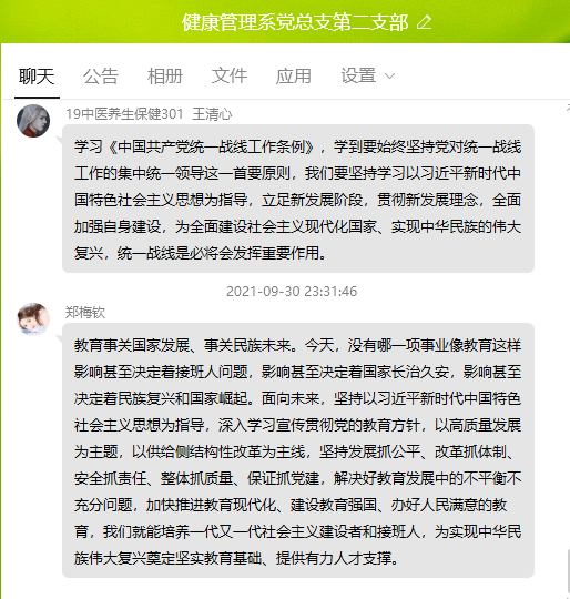 9月30日,健康管理系黨總支第二支部組織全體師生黨員開展專題學習交流會,學習《關于深入學習宣傳貫徹黨的教育方針的通知》精神、《中國共產黨統一戰線工作條例》及《中共福建省委關于貫徹<中國共產黨統一戰線工作條例>的實施意見》。會議由支部書記張凱捷主持。