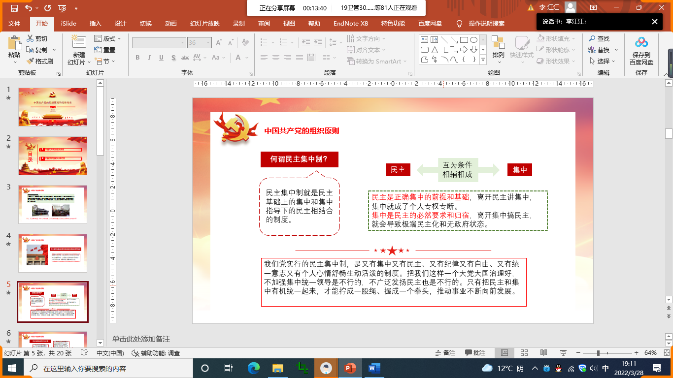 為了讓同學們對中國共產黨的組織原和紀律則有更清楚的認知,3月28日,在線上開展了主題為“中國共產黨的組織原則和紀律”主題黨課。本次由健康管理系輔導員李江江主講,健康管理系業余分黨校第八期培訓班暨青馬工程培訓班全體學員參加此次黨課。