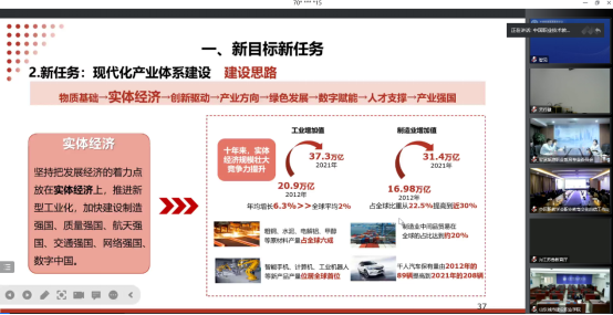中國職業技術教育學會會長、教育部原副部長魯昕,作了題為《中國式現代化:職業教育的使命擔當》主旨報告,從“新目標新任務”“新定位新理解”“新價值新使命”三個方面深刻解讀了黨的二十大報告,深入闡釋了新時代職業教育的新定位新使命。來自黨建工作委員會、國際合作交流工作委員會、高端裝備制造專業委員會、微電子技術專業委員會、鄉村振興與城市可持續發展工作委員會的職業教育專家,分別從不同層面,分享了學習黨的二十大精神心得體會。