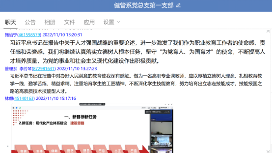2022年11月10日,由中國職業技術教育學會組織的“學習宣傳貫徹黨的二十大精神座談會”在線上召開,各支部黨員收看了座談會。