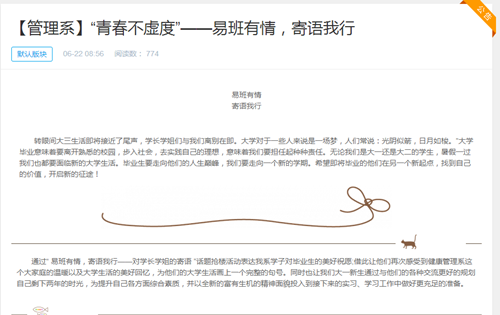 同時系部易班分站結合線上“易班有情,寄語我行”青春不虛度話題搶樓活動,讓16、17級在校生寄語畢業生美好祝愿,讓他們感受到健康管理系這個大家庭的溫暖,也為即將畢業的15級的校園生活畫上圓滿的句號。