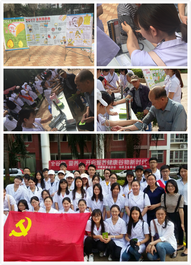 5月18日,管理系醫學營養教研室攜手管理系黨總支在福州市臺江區新港社區開展營養宣教活動,該活動是福建省營養學會2017全民營養周活動方案之一。我系徐亦彥、吳晶、揭金花和詹燕婷老師帶領營養專業40名學生參與了此次活動。