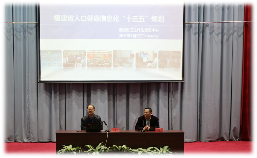 3月2日下午,省衛生計生信息中心俞建明主任蒞臨我院,在學院學術廳舉辦了《福建省人口健康信息化十三五規劃》專題講座。講座由院黨委書記曾武祈主持,省衛生計生委規劃與信息處高潔研究員、學院院長蘇友新等院領導、全體教職工及管理系衛生信息管理專業全體在校學生聆聽了講座。