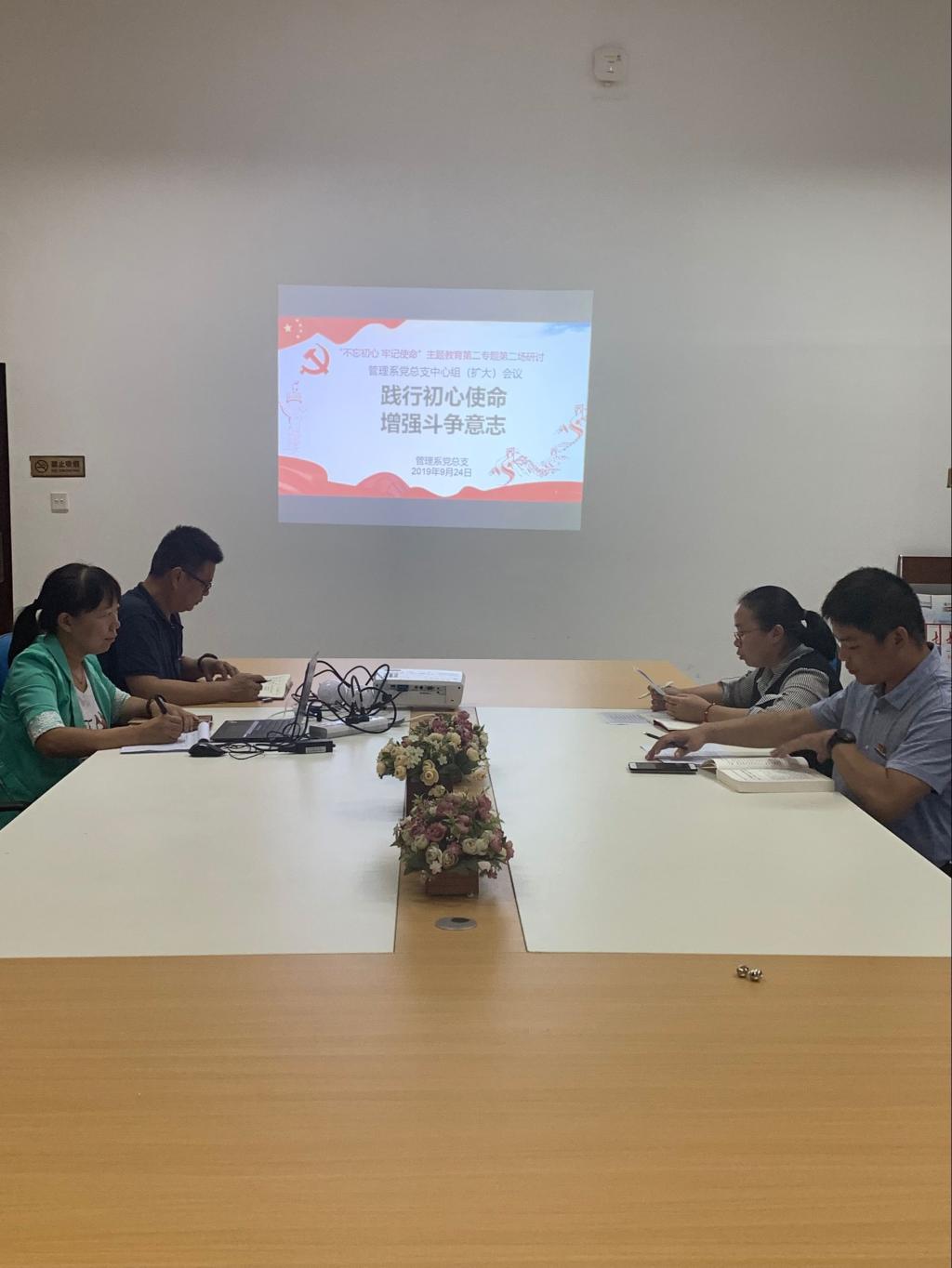 9月24日下午,管理系黨總支在系會(huì)議室召開(kāi)管理系黨總支中心組(擴(kuò)大)會(huì)議,開(kāi)展題為“踐行初心使命,增強(qiáng)斗爭(zhēng)意志”的第二專(zhuān)題第二場(chǎng)研討。管理系黨總支艾松軍、莊海林、張?jiān)葡?、揭金花參加研討。?huì)議由管理系黨總支書(shū)記艾松軍主持。