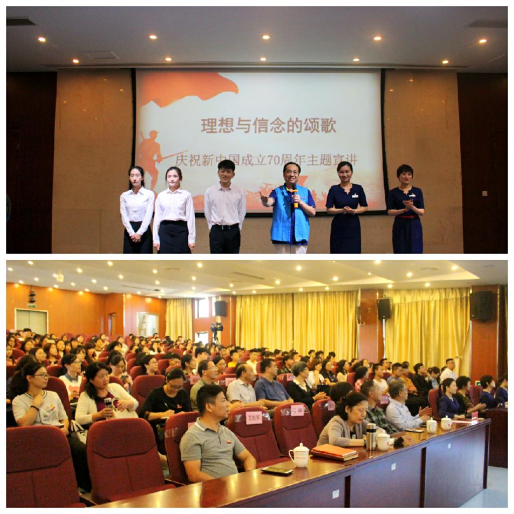 為慶祝新中國成立70周年,弘揚(yáng)革命先驅(qū)為民族復(fù)興展現(xiàn)出的戰(zhàn)斗意志和不屈精神,結(jié)合“不忘初心、牢記使命”主題教育精神,10月24日下午3:00,健康管理系黨總支邀請福建博物院“理想與信念的頌歌”宣講團(tuán)在實(shí)訓(xùn)樓四樓報(bào)告廳開展慶祝新中國成立70周年愛國主義教育宣講活動(dòng)。學(xué)院副處級干部、健康管理系師生到場聆聽報(bào)告會(huì)。報(bào)告會(huì)由學(xué)院黨委委員、陳貞健副院長主持。