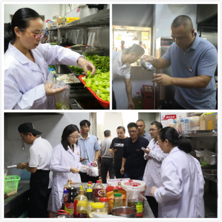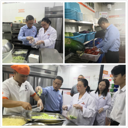 管理系第一黨支部與院直機(jī)關(guān)黨總支第三黨支部于10月22日對(duì)第一食堂、明湖食堂蔬菜和食用油開展質(zhì)量檢測。學(xué)院黨委委員、陳貞健副院長、管理系黨總支書記艾松軍、管理系主任莊海林、院直機(jī)關(guān)黨組織第三黨支部書記葉文偉、黨員林小朋,管理系黨管理系第一黨支部書記/預(yù)防醫(yī)學(xué)教研室主任揭金花、黨員李丹,以及預(yù)防醫(yī)學(xué)專業(yè)學(xué)生吳紅梅等參與采樣,預(yù)防醫(yī)學(xué)帶頭人李宏老師到現(xiàn)場指導(dǎo)。