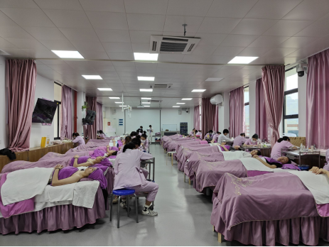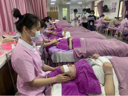 本次高級美容師考試分為理論考試和技能考核,技能考核部分項目分為面部刮痧護理、背部減肥護理、腿部背面芳香淋巴引流護理、煙熏妝等??忌耧枬M、信心十足地進行著操作。他們認真地參加每個項目的考試。