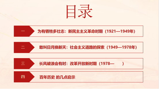 課上,孔祥榮分別從新民主主義革命時(shí)期、社會(huì)主義道路的探索、改革開(kāi)放新時(shí)期、百年歷史的幾點(diǎn)啟示講解了,一百年來(lái),中國(guó)共產(chǎn)黨為爭(zhēng)取民族獨(dú)立、人民解放和實(shí)現(xiàn)國(guó)家富強(qiáng)、人民幸福而不懈奮斗。中國(guó)共產(chǎn)黨始終代表最廣大人民的根本利益,實(shí)現(xiàn)好、維護(hù)好、發(fā)展好最廣大人民的根本利益,把人民對(duì)美好生活的向往作為我們的奮斗目標(biāo),讓廣大人民共享改革發(fā)展的成果,在兌現(xiàn)了全面建成小康社會(huì)的鄭重承諾以后,又開(kāi)啟了全面建設(shè)社會(huì)主義現(xiàn)代化國(guó)家新征程,積極推動(dòng)共同富裕有實(shí)質(zhì)性進(jìn)展。強(qiáng)調(diào),當(dāng)代青年有幸見(jiàn)證黨的百年華誕,生逢盛世,亦當(dāng)不負(fù)盛世,要以昂揚(yáng)姿態(tài)把青春理想投入國(guó)家與民族的偉大事業(yè)中,把青春力量凝聚到時(shí)代夢(mèng)想和美好前程中,以?shī)^斗之青春不負(fù)黨和人民的厚望,書(shū)寫(xiě)人生的繁花似錦