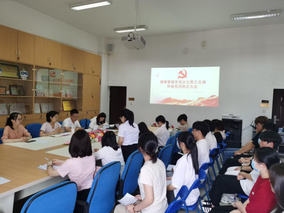 6月1日,健康管理系黨總支第三支部于圖書館五樓會議室召開預備黨員轉正大會,會議就盧德利等10名志轉正問題展開了充分討論,黨支部書記王開曄同志主持會議。