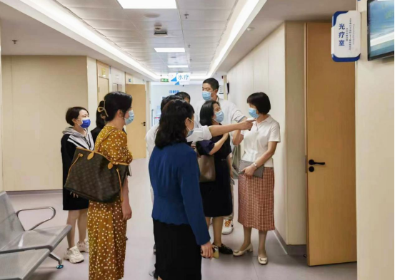 李美華一行在福州市皮膚病防治院副院長黃劍清的帶領,參觀了醫學美容中心、中醫美容科等相關科室,深入了解了醫院發展情況、醫學美容技術專業學生實習情況等。健康管理系主任莊海林介紹了我校專業建設現狀和特色優勢,并希望加強校院合作力度,培養更多優秀的醫美專業人才。
