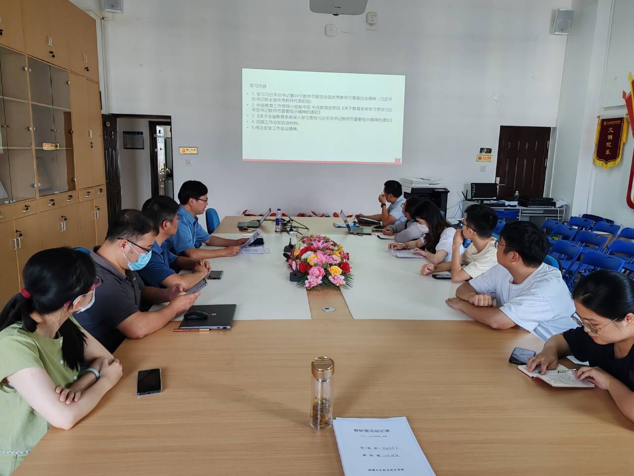 葉海結合學習內容和系部工作實際,提出三點要求。一是全體教職工要提高政治站位,充分認識、深刻領會習近平總書記教師節重要指示的重大意義,要大力弘揚培育踐行教育家精神,將教育家精神融入貫徹落實黨的二十大精神。二是要抓好習近平總書記教師節重要指示精神的學習貫徹,通過廣泛宣傳、深入學習、持續落實,提高廣大教師為黨育人、為國育才的責任感與使命感。三是以建設“雙高校”為目標,著力營造“尊師重教”氛圍,要將學習貫徹習近平總書記教師節重要指示精神轉化為建設高素質教師隊伍的具體實踐,持之以恒抓好教師思想政治和師德師風建設。