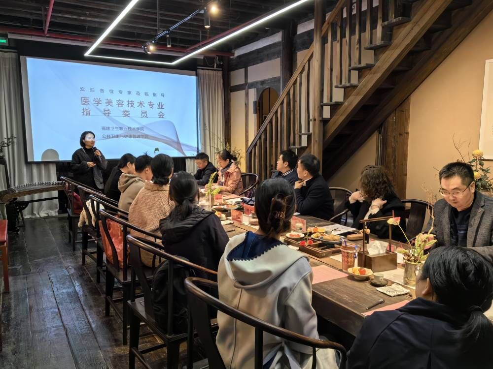 12月3日,公共衛生與健康管理學院召開醫學美容技術專業指導委員會。參加本次會議的專家有福州市皮膚病防治院副院長陳陽、福建醫科大學附屬協和醫院整形外科與再生醫學科副主任李銘、福建省第二人民醫院皮膚科主任醫師黃寧、福州愛美爾醫療美容門診有限公司總經理呂影、福州玲藝保健護膚品有限公司總經理趙辛艷、福建省美佳醫療科技有限公司人事中心總監夏奕林、東方美美容美體連鎖機構福州區域經理曾仰敏、華熙生物科技股份有限公司東區醫學總監金權良,受邀出席的企業代表有福州達意美健康管理有限責任公司總經理林夢辛以及市場經理常志國、福州臺江醫院人資經理何娟。會議由醫學美容技術專業負責人蘇碧鳳主持,專業全體教師參會。
