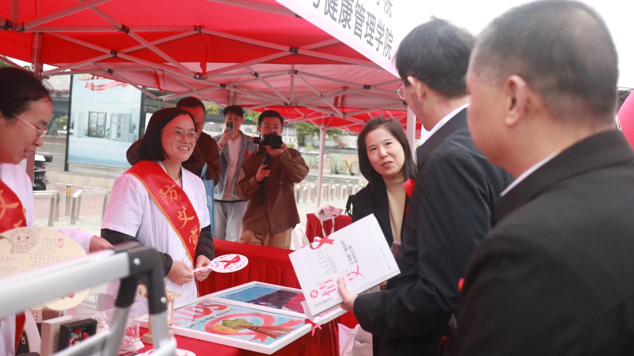 活動現場,第一黨支部教師黨員積極參與了免費咨詢和義診、健康科普展覽、科普材料發放、健康知識問答、朋友圈集贊、互動游戲等活。同時,設立攤位,為群眾發放了宣傳材料、展示了學生艾滋病防治宣傳作品等,參與營造全社會參與艾滋病防治工作的良好社會氛圍,切實將艾滋病防治知識普及給群眾,增強他們的防艾意識。