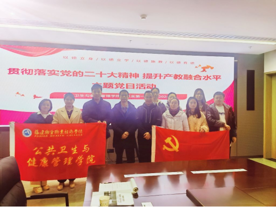 為深入貫徹落實(shí)中共中央辦公廳、國務(wù)院辦公廳印發(fā)的《關(guān)于深化現(xiàn)代職業(yè)教育體系建設(shè)改革的意見》和省政府辦公廳印發(fā)的《關(guān)于進(jìn)一步推動(dòng)職業(yè)教育服務(wù)經(jīng)濟(jì)社會(huì)發(fā)展的十條措施》,1月3日,由公共衛(wèi)生與健康管理學(xué)院黨總支第一支部與福州市疾病預(yù)防控制中心(以下簡稱“福州市疾控”)共同舉辦“貫徹落實(shí)黨的二十大精神 提升產(chǎn)教融合水平”主題黨日活動(dòng)。此次活動(dòng)由福州市疾病預(yù)防控制中心相關(guān)人員、公共衛(wèi)生與健康管理學(xué)院黨總支第一支部、預(yù)防醫(yī)學(xué)專業(yè)師生共同參與。