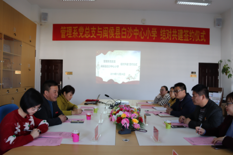 為推動城鄉(xiāng)教育均衡發(fā)展,服務(wù)鄉(xiāng)村振興戰(zhàn)略,助力脫貧攻堅,12月26日上午,管理系黨總支與白沙中心小學結(jié)對共建簽約儀式在管理系會議室舉行。白沙中心小學校長李維銓、副校長林昌芳、德育處主任陳秀金、德育處副主任夏林萍、學院黨委委員、陳貞健副校長、管理系黨總支書記艾松軍、管理系主任莊海林、管理系黨總支紀檢委員、辦公室主任李淼淼、管理系黨總支專職組織員張云霞、管理系黨總支宣傳委員、第一黨支部副書記揭金花、第二黨支部書記、團總支書記馮瑞華、管理系團總支副書記趙茜參加會議。會議由管理系黨總支書記艾松軍主持。