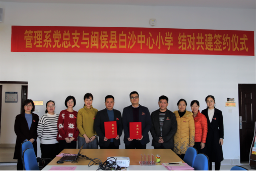 此次管理系黨總支與白沙中心小學結(jié)對共建成功簽約,進一步推動樂“文明校園+鄉(xiāng)村少年宮”共建項目,形成結(jié)對共建工作的長效機制,讓共建成果服務(wù)鄉(xiāng)村振興,提升農(nóng)村未成年人思想道德建設(shè)工作水平。今后,雙方將堅持黨建引領(lǐng)、互相支持、共同進步、共謀共建的原則,以“激發(fā)黨建新活力,實現(xiàn)雙贏齊發(fā)展”為目標,實現(xiàn)資源共享、優(yōu)勢互補、全面發(fā)展、共同提高,以共建促發(fā)展,構(gòu)建新的有機互聯(lián)的組織系統(tǒng),不斷提高共建工作整體效應(yīng)。