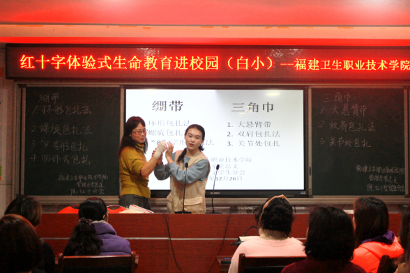 此次活動是管理系黨總支與閩侯縣白沙中心小學結對共建簽約儀式后,針對白沙中心小學百名骨干教師開展的急救技能培訓,有力地推進了鄉村少年宮師資隊伍建設,更加有效地落實教師自護自救知識對青少年成長教育的促進作用。