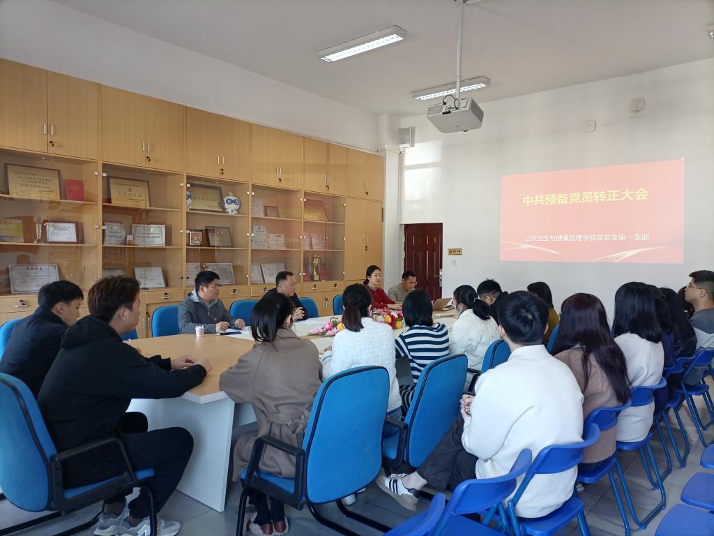 2023年12 月25日,公共衛生與健康管理學院黨總支第一支部舉行預備黨員轉正大會,大會討論并審議預備黨員李其鏗同志轉為正式黨員問題,支部共有黨員20名,正式黨員19人,實到正式黨員15名。