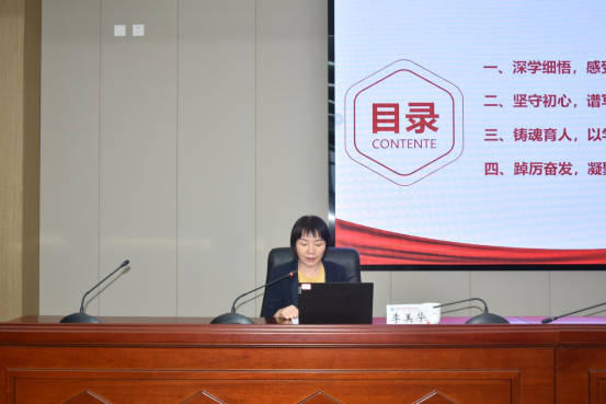 李美華結合分管領域和學校實際,從深學細悟,感受黨的二十大精神偉力;堅守初心,譜寫中國特色衛生健康事業新篇章;鑄魂育人,以學校建設發展成績檢驗學習實效;踔厲奮發,凝聚奮進新征程的磅礴力量等四個部分,深入淺出的宣講和闡釋,引導廣大黨員干部、師生員工深刻認識黨的二十大的重大歷史意義,深入領會黨的二十大作出的重大論斷,進一步統一思想認識、明確目標方向、匯聚行動力量。