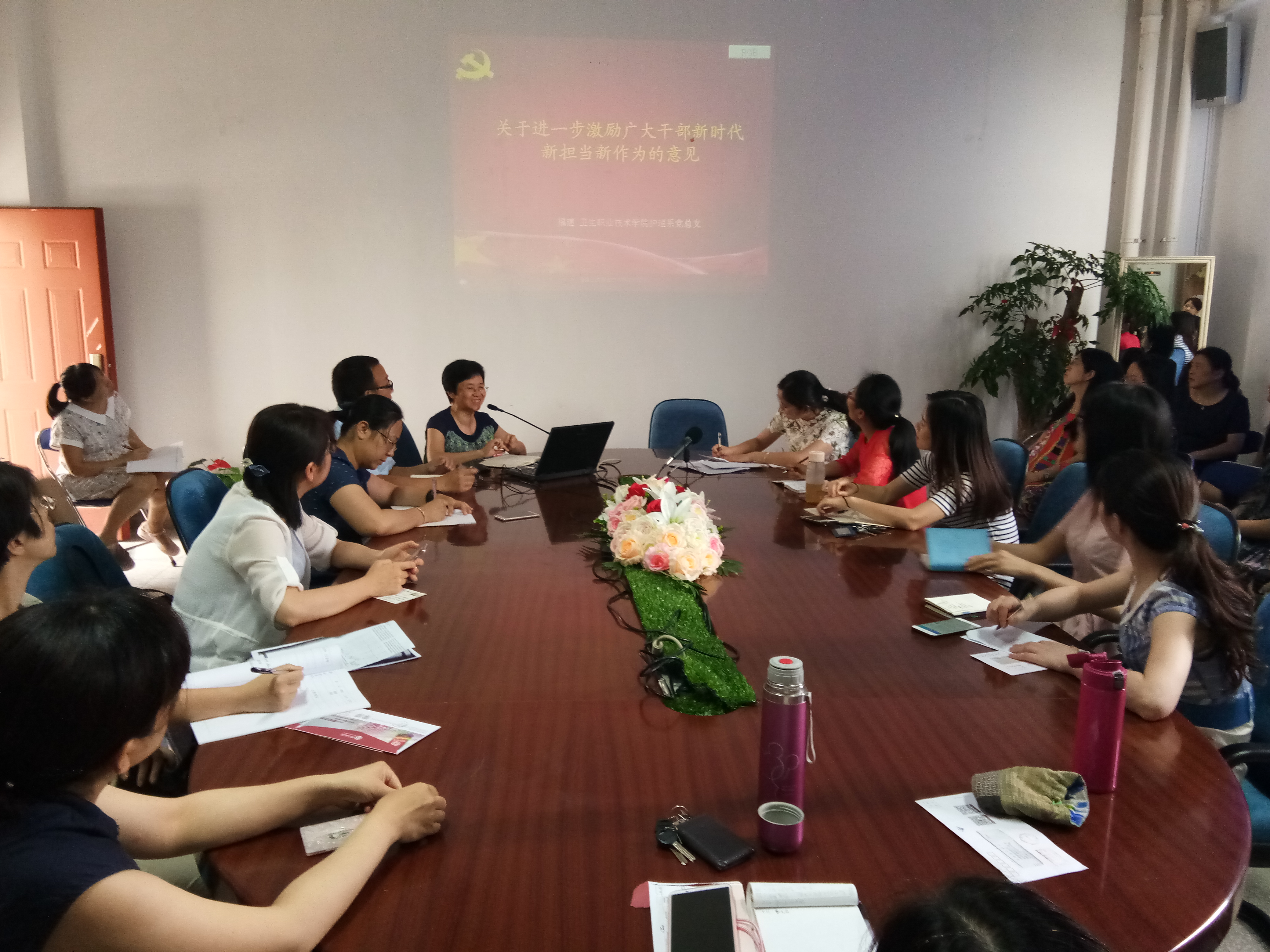 2018年6月21日,護理系黨總支在護理系會議組織全系教職工學習《關于進一步激勵廣大干部新時代新作為的意見》(以下簡稱《意見》),本次學習由護理系黨總支謝濤書記主講,我系全體教職工參加學習。