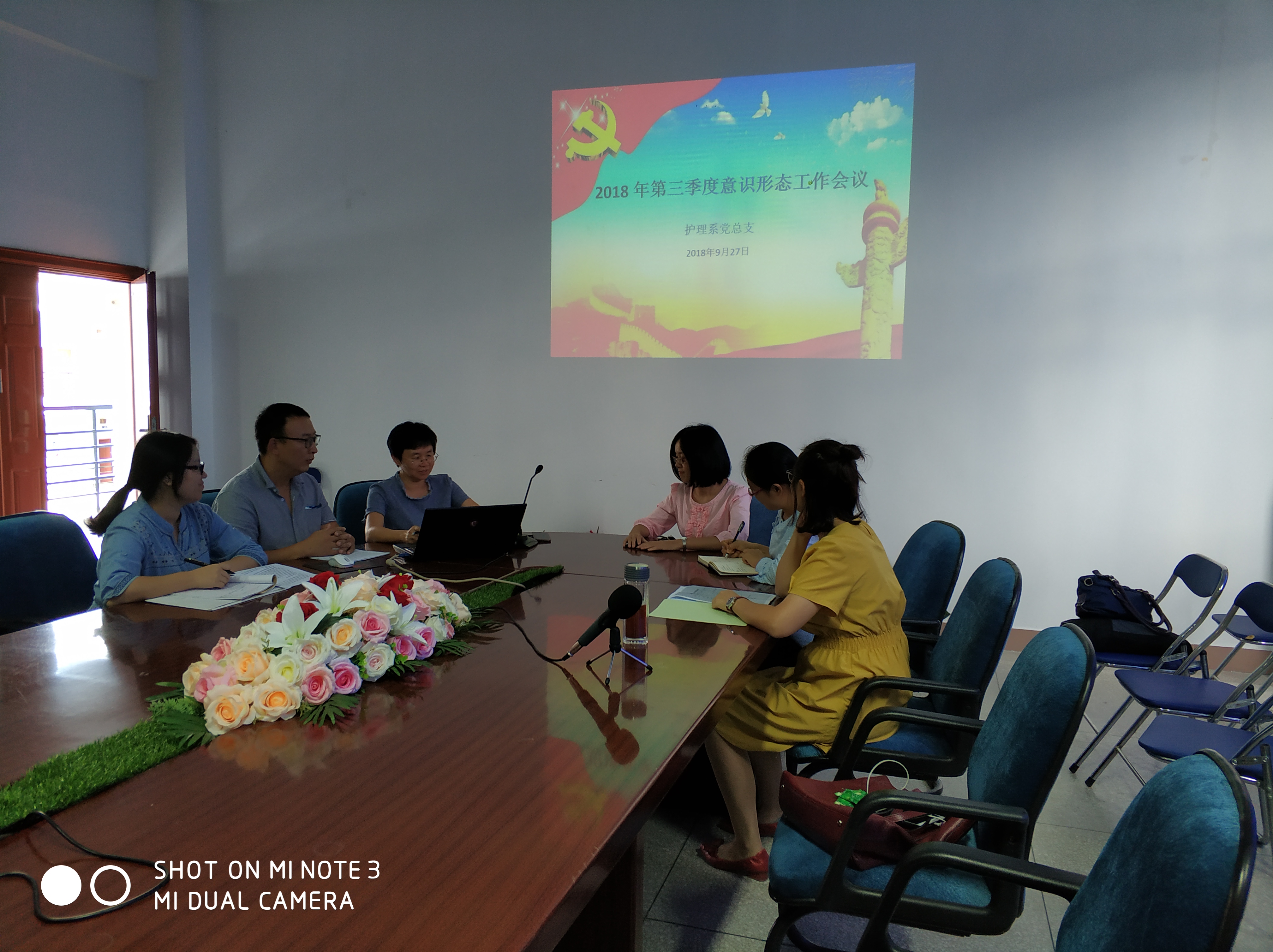 2018年9月27日上午,護(hù)理系黨總支委召開(kāi)2018年第三季度意識(shí)形態(tài)工作會(huì)議,護(hù)理系黨總支謝濤書記主持會(huì)議,護(hù)理系團(tuán)總支李寶珠書記列席了此次會(huì)議。