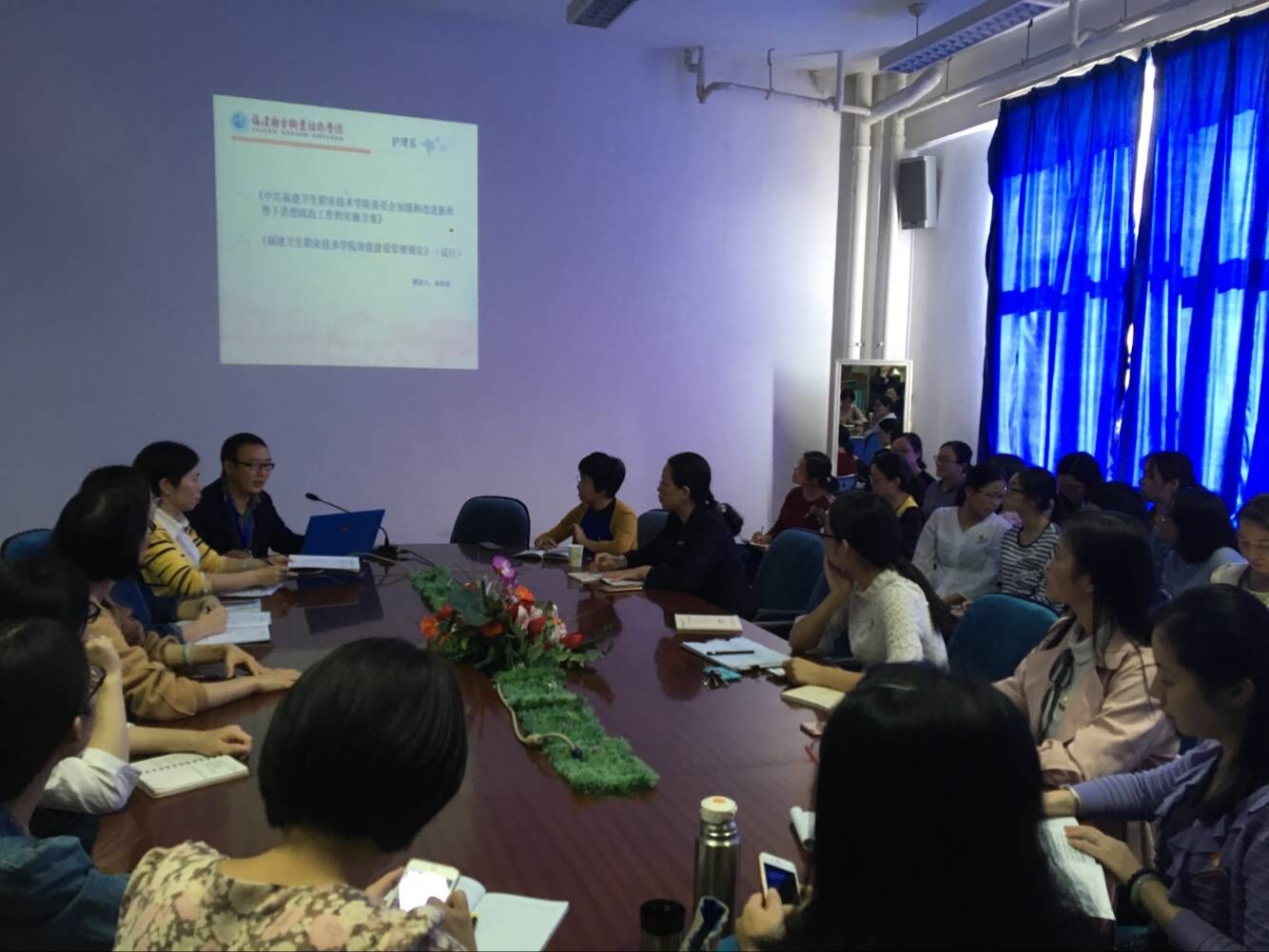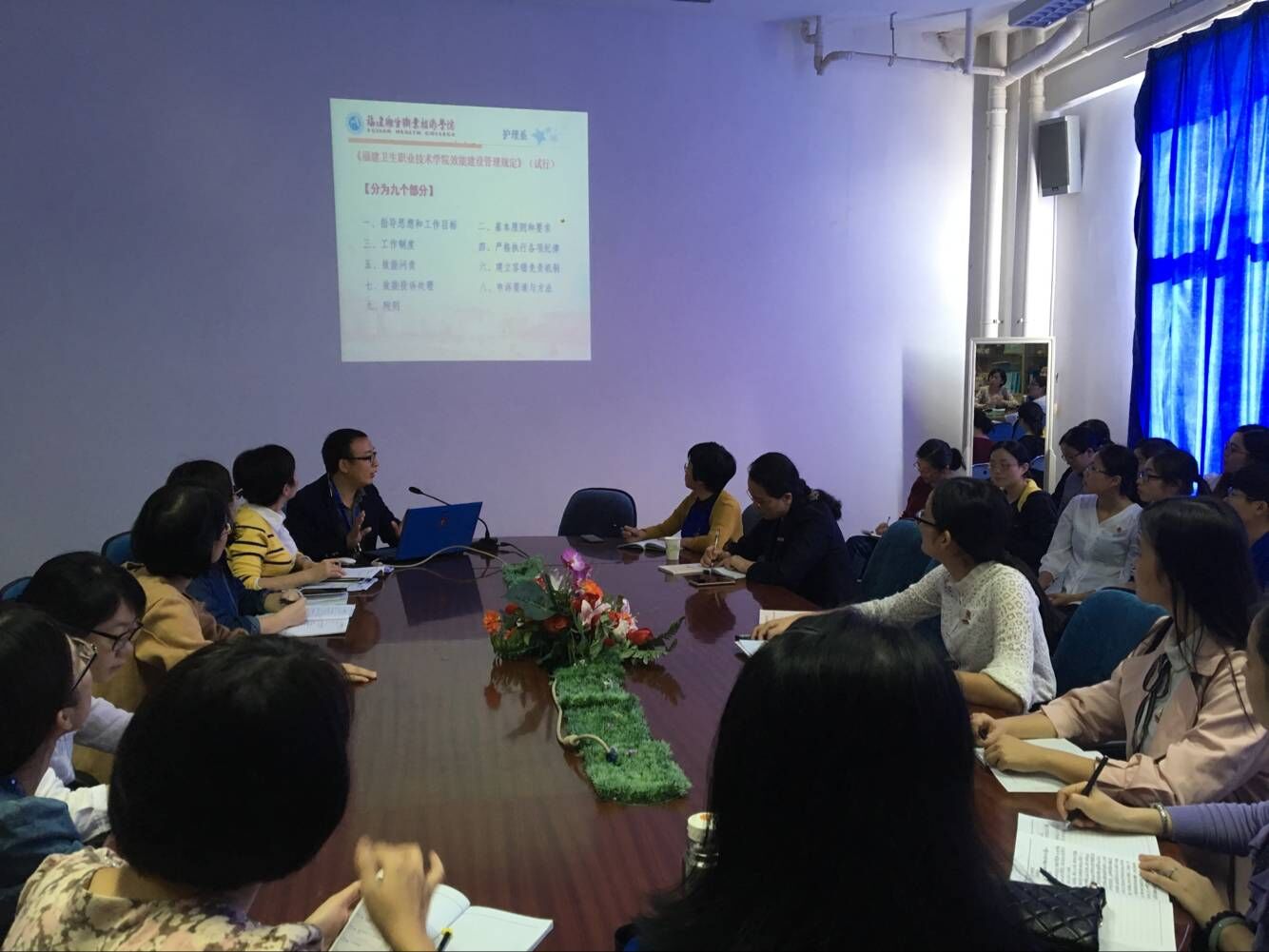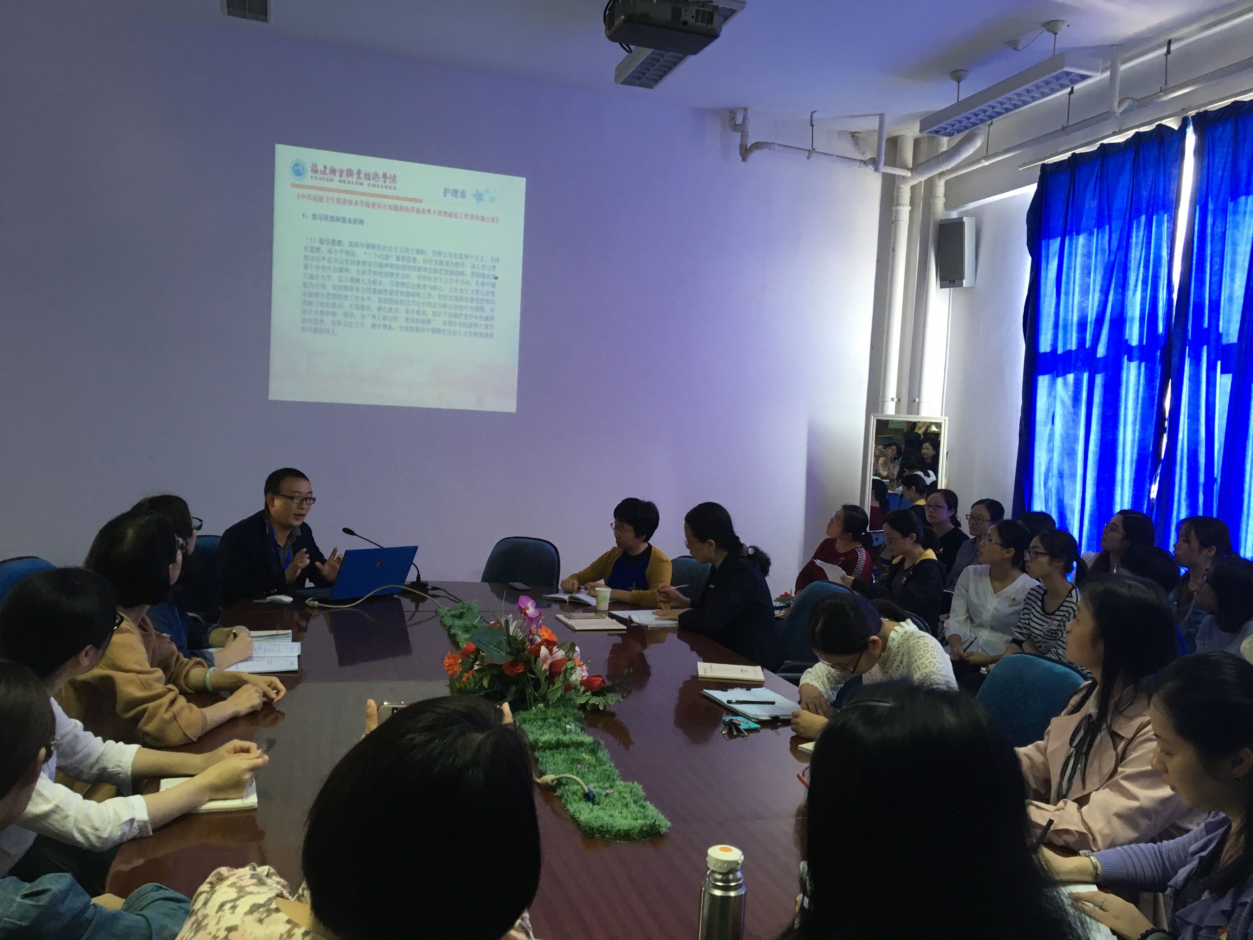 年11月9日,護(hù)理系在會(huì)議室召開(kāi)系部大會(huì),學(xué)習(xí)了《中共福建衛(wèi)生職業(yè)技術(shù)學(xué)院委員會(huì)加強(qiáng)和改進(jìn)新形勢(shì)下思想政治工作的實(shí)施方案》和《福建衛(wèi)生職業(yè)技術(shù)學(xué)院效能建設(shè)管理規(guī)定》(試行),全體教職工及部分學(xué)生代表參加學(xué)習(xí)。