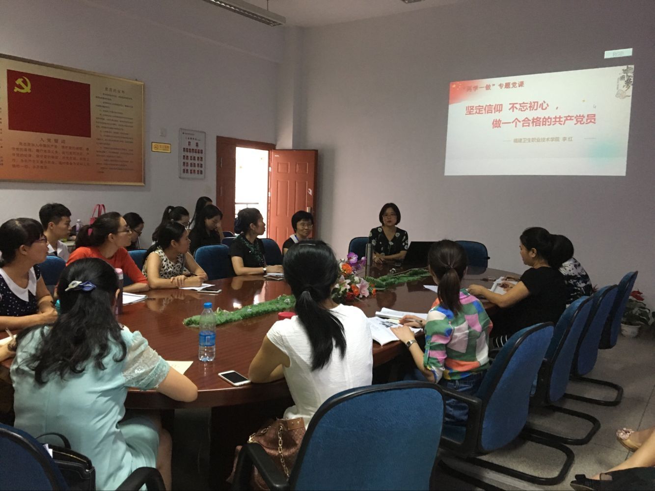 接下來由李紅院長做主題為“堅定信仰,不忘初心,做一個合格的共產(chǎn)黨員”的“兩學(xué)一做”專題黨課。李紅院長由《阿甘正傳》引入信仰的含義,認(rèn)為對信仰的不同理解,體現(xiàn)了一個人生命的寬度和厚度。從個人、民族、國家三個角度闡述對信仰的理解,并重點為大家講解了中國共產(chǎn)黨人的信仰和中國共產(chǎn)黨的歷史貢獻(xiàn)。李紅院長希望我們堅定信仰,不忘初心,不忘自己選擇護(hù)理工作的初衷,繼續(xù)為護(hù)理工作不懈努力。最后李紅院長從如何做一名合格的共產(chǎn)黨員對大家寄予希望: