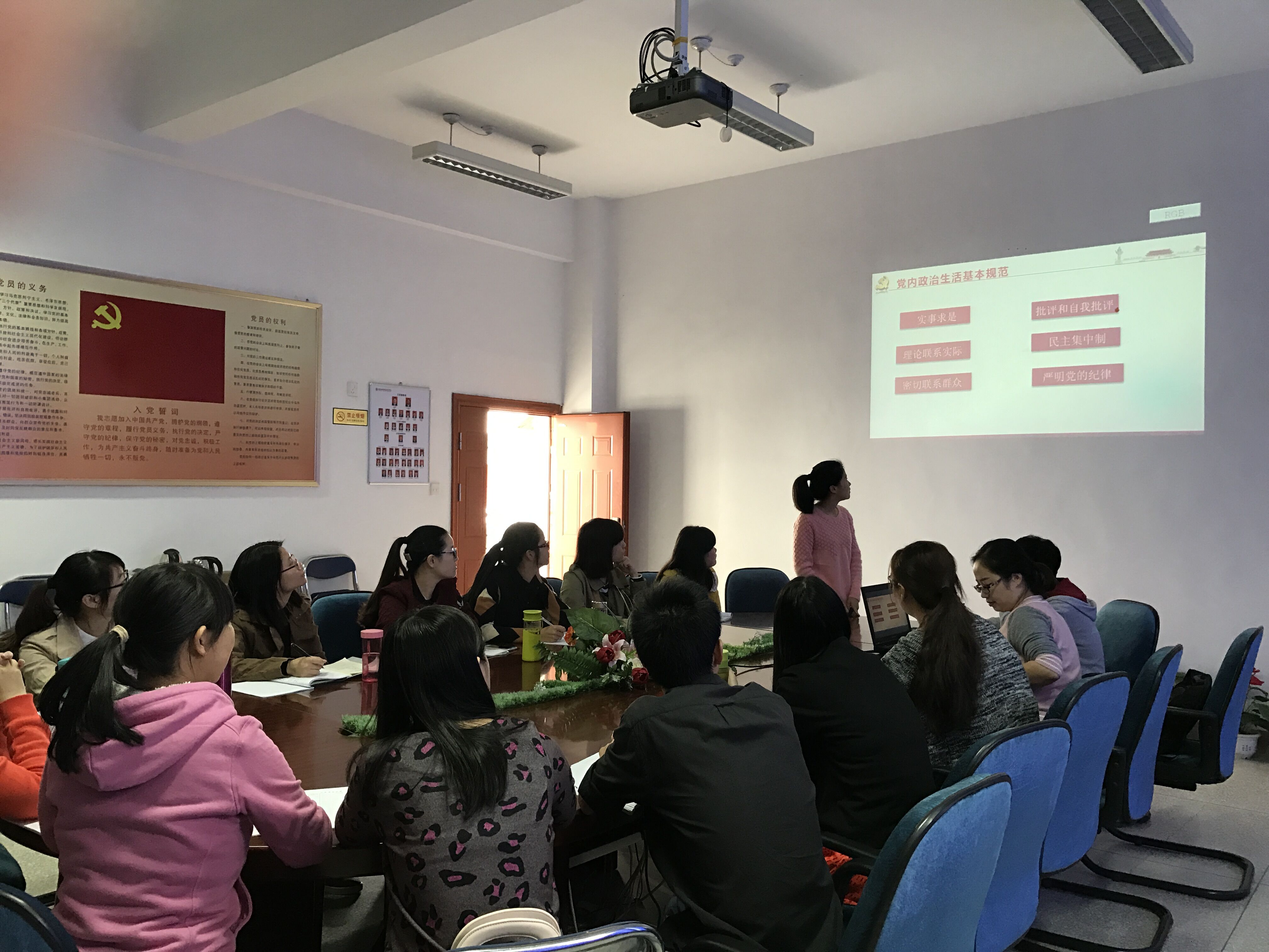 本次會議支部書記何映紅老師主持,學習內容主要包括“黨內政治生活是傳統”、“制定新形勢下的準則”、“修訂《黨內監督條例》”等幾個方面。十八屆六中全會是在全面建成小康社會決勝階段召開的一次十分重要的會議。其內涵豐富、博大精深,要深入學習領會全會精神,深刻把握全面從嚴治黨的重大意義,把握新形勢下加強和規范黨內政治生活的基本遵循,把握加強黨內監督的基本要求,把握領導干部特別是高級干部是嚴肅黨內政治生活、加強黨內監督的重點對象,把思想和行動統一到全會精神上來。