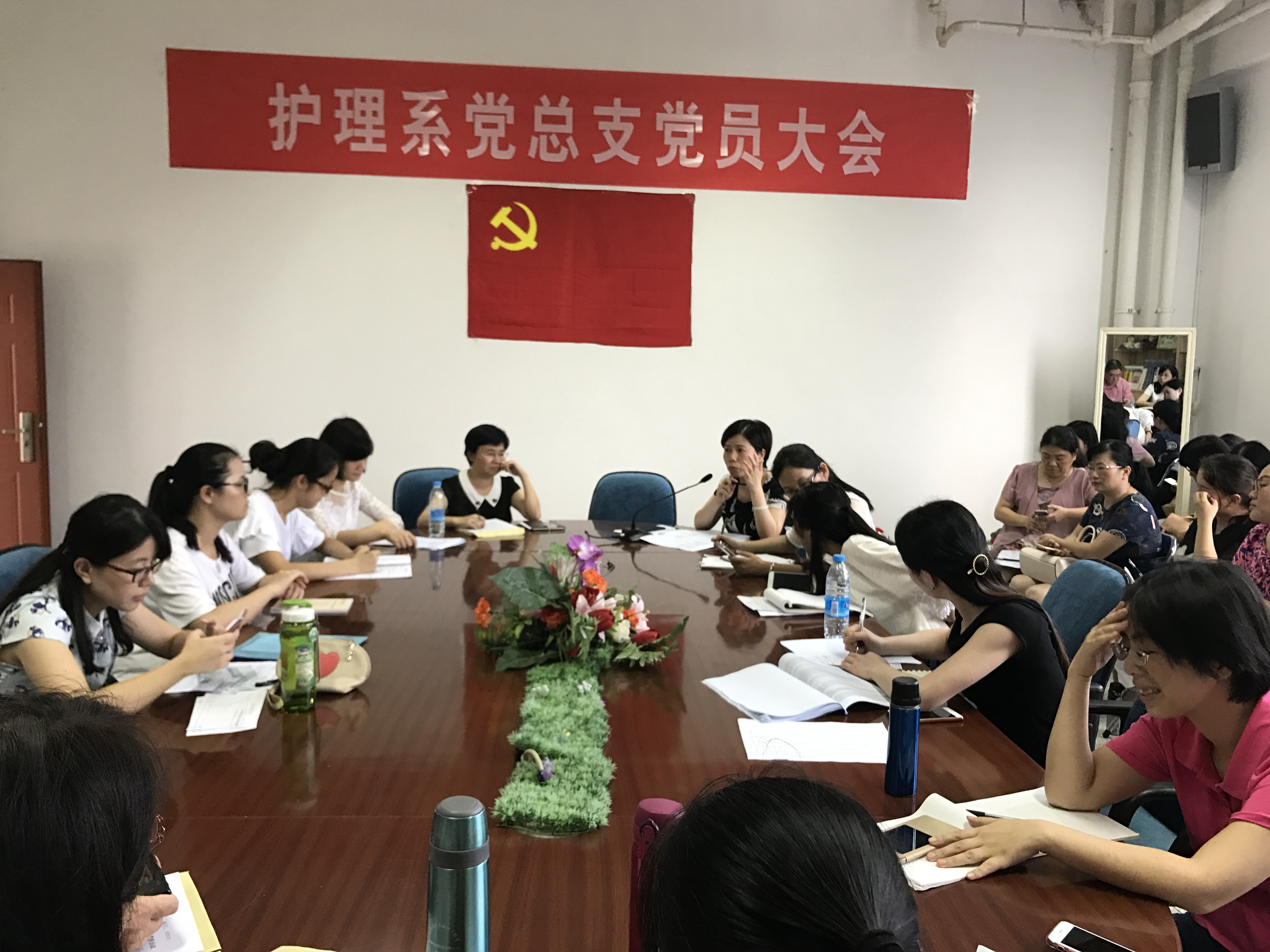 2017年6月29日下午,護理系黨總支于系部301會議室開展了主題為《以榜樣為鏡,向優秀看齊》的廖俊波先進事跡學習專題黨課,并在課后組織黨員教師開展集中研討,在全系中營造了濃厚的“兩學一做”學習氛圍。
