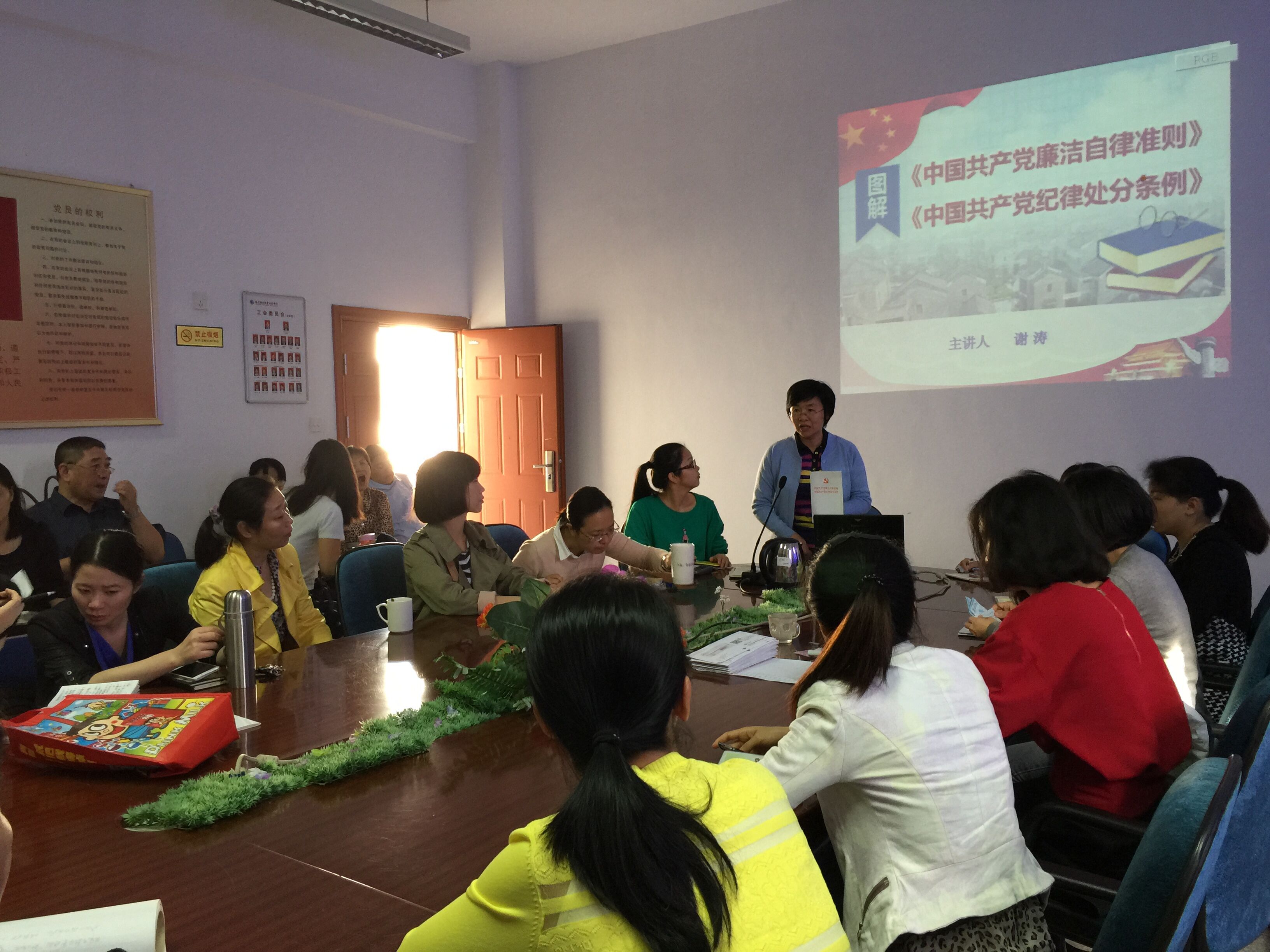 2015年12月1日中午,護理系黨總支在會議室召開了《中國共產黨廉潔自律準則》紀律處分條例學習會,黨總支全體黨員參加了會議。會上,護理系黨總支謝濤書記解讀了《中國共產黨廉潔自律準則》紀律處分條例。在解讀的過程中,謝濤書記還根據《準則》、《條例》內容,突出強調了政治紀律、政治規矩和組織紀律,要求全體黨員牢固樹立黨章黨規黨紀意識,深刻認識到周永康、薄熙來、徐才厚、令計劃、郭伯雄等嚴重違反政治紀律、損害黨的事業的危害性,堅定不移推進黨風廉政建設和反腐敗斗爭,狠抓落實中央八項規定精神,做到守紀律、講規矩、知敬畏、存戒懼,自覺在廉潔自律上追求高標準,在嚴守黨紀上遠離違紀紅線。