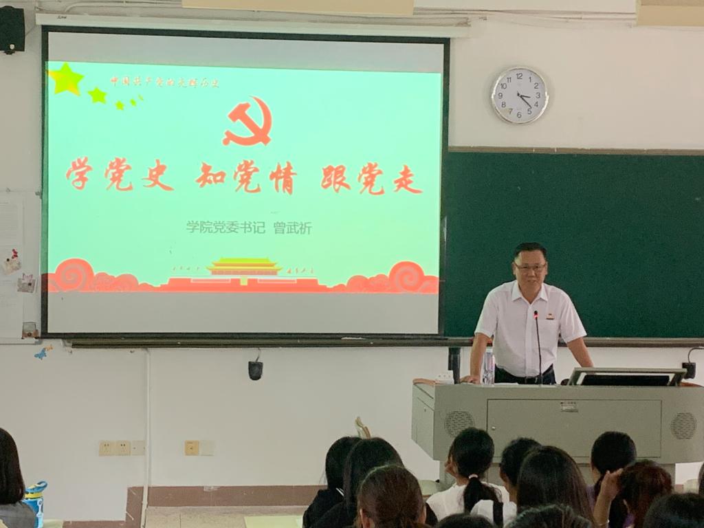 曾武祈書記以“學黨史、知黨情、跟黨走”為主題,為我們回顧了黨的輝煌歷史,講述了中國共產黨成立至今偉大而又艱辛的歷程。他以習近平總書記的講話“歷史是最好的教科書,也是最好的清醒劑”開篇,向大家闡釋了學習黨史的重要意義。接著,他從新民主主義革命時期、社會主義革命和建設時期、改革開放和社會主義現代化建設時期三個方面對黨的光輝歷史進行了回顧。他指出,歷史事實雄辯地告訴我們,沒有共產黨就沒有新中國,只有社會主義才能救中國,只有改革開放才能發展中國,發展社會主義,發展馬克思主義,只有中國共產黨才是中國特色社會主義事業的堅強領導核心。最后,他強調,作為黨員同志,學習黨史既是一次把握規律、把握未來的理論學習,也是一次堅定信仰、堅定方向的黨性教育。作為年輕的一代,認真學習黨的歷史,對繼承和發揚光大革命傳統、黨的優良作風,對提高自己的認識能力和處理實際問題的能力都是十分必要和有益的。