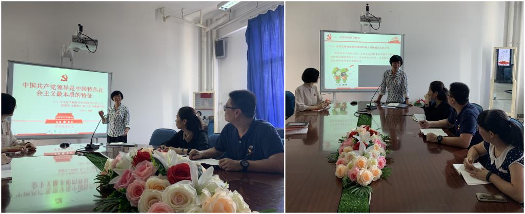 課上,謝濤書記就《習近平新時代中國特色社會主義思想學習綱要》第六章內容——中國共產黨領導是中國特色社會主義最本質的特征與大家做了分享。她強調,習近平總書記在黨的十九大報告中說道,“黨政軍民學,東西南北中,黨是領導一切的”,這充分說明了我們要把黨的領導落實到一切工作當中去。接著,她從堅決做到“兩個維護”、完善堅持黨的領導的體制機制、全面增強黨的執政本領三個方面向我們解讀了為什么說中國共產黨領導是中國特色社會主義最本質的特征。最后,她強調,中國共產黨領導是中國特色社會主義最本質的特征,澄明了中國特色社會主義與中國共產黨的根本性聯系,也必將推動中國特色社會主義和中國共產黨自身的發展和完善。