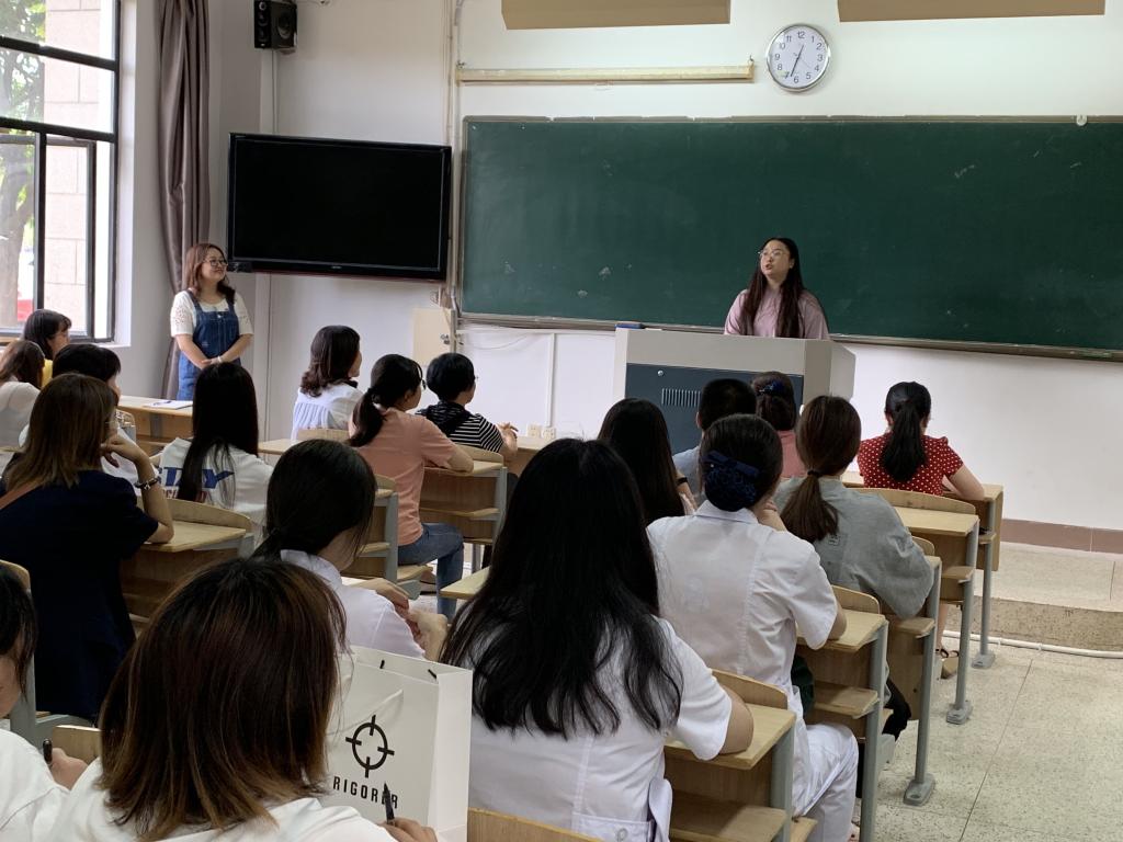鄭梅欽老師首先向大家介紹護理系心理輔導站的基本情況,護理系心理輔導站于2019年4月成立,由護理系黨總支書記、副書記、心理輔導員、輔導員、班級心理委員及宿舍信息員構成。主要負責落實學院心理健康教育中心部署的各種心理健康教育輔導工作,并結合各系實際,主持策劃、組織開展內容多樣的心理健康教育活動。護理系心理輔導站成立以來,創辦了《心海羅盤周刊》,組織開展心理講座、團體輔導等各類學生活動,旨在提高師生的心理健康知識以及學生的心理健康水平。同時,通過深入學生的學習與生活,了解學生心理健康狀況和心理發展水平,及時發現學生心理異常的現象,適時開展心理教育與宣傳工作,幫助學生解決心理問題 。對于心理輔導站成員近半年的工作,鄭梅欽老師表示感謝,希望心理輔導站的成員們密切關注同學們的身心健康狀況,及時發現及時解決。