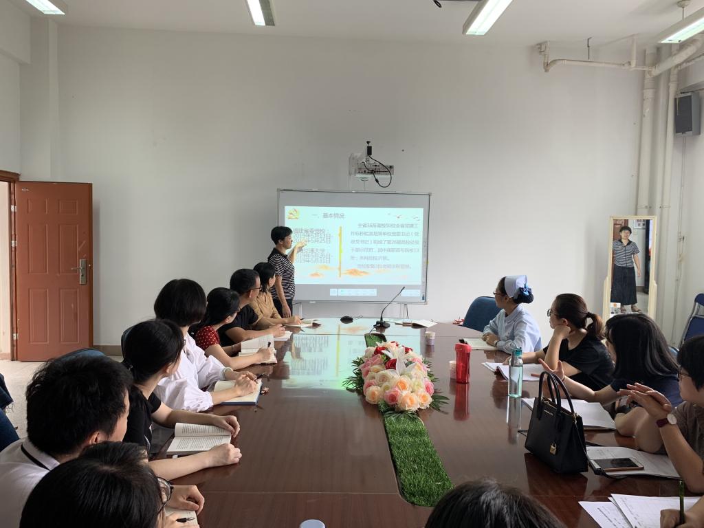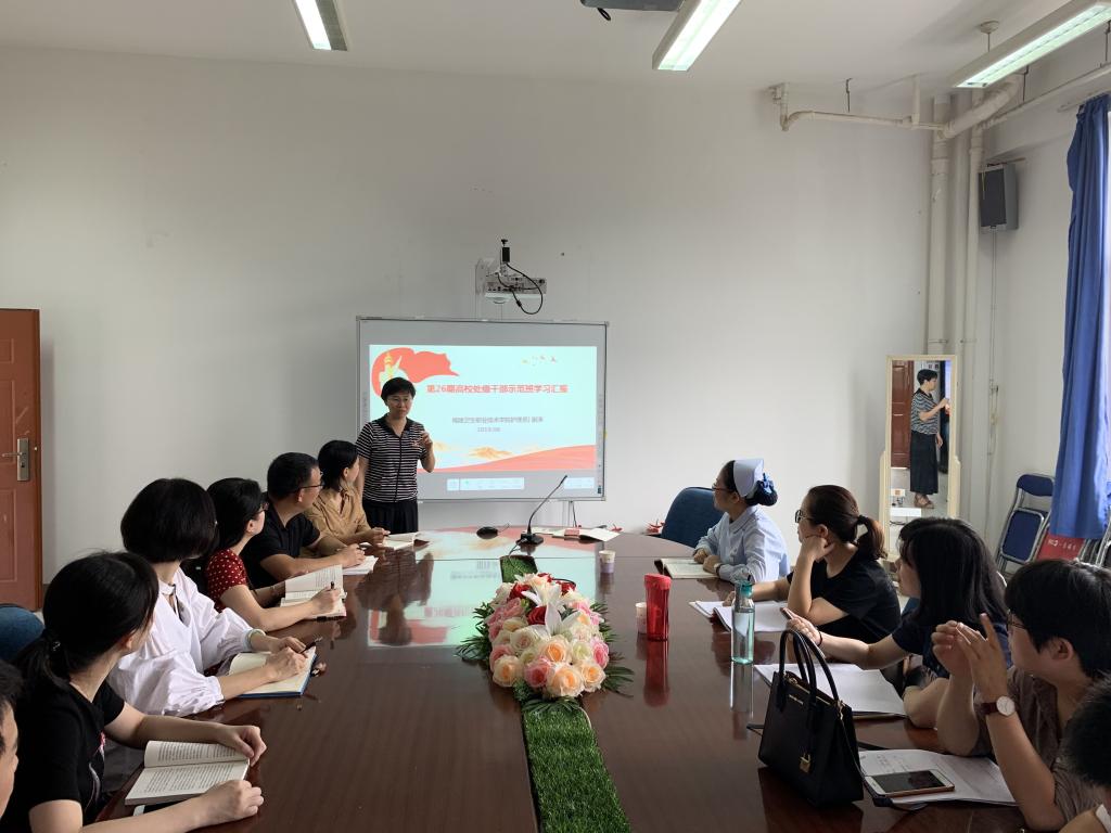 2019年5月13日至5月31日,全省36所高校50位全省黨建工作標桿院系培育單位黨委書記(黨總支書記)在福建省委黨校和上海交通大學組成第26期高校處級干部示范班進行學習。護理系黨總支謝濤書記參加了此次學習,為將學習精神傳達給廣大黨員同志,謝濤同志于2019年6月27日在護理系301會議室向護理系黨員同志匯報了學習體會。