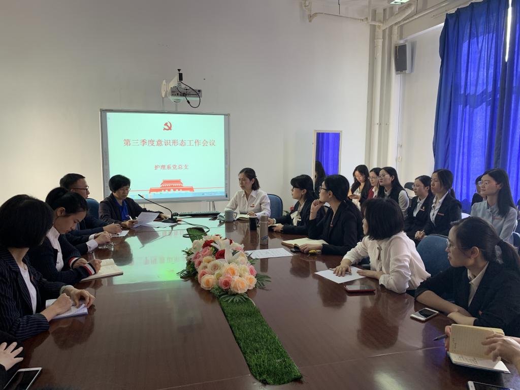 為深入學(xué)習(xí)貫徹習(xí)近平總書記關(guān)于意識形態(tài)工作的系列重要講話精神,進(jìn)一步提高黨員干部意識形態(tài)工作意識和能力,10月10日,護(hù)理系黨總支于護(hù)理系301會議室組織召開2019年第三季度意識形態(tài)工作專題會議。會議由護(hù)理系黨總支謝濤書記主持,護(hù)理系全體教師參加本次會議。