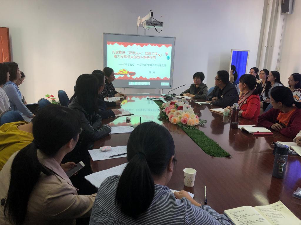 黨總支書記謝濤講授“不忘初心、牢記使命,扎實推進‘雙帶頭人’培育工程,著力發揮黨支部戰斗堡壘作用”主題黨課。謝濤書記強調“不忘初心、牢記使命”是貫徹黨的十九大精神的重要舉措?!安煌跣摹⒗斡浭姑笔屈h保持永遠年輕的重要法寶?!安煌跣?、牢記使命”是黨始終銘記歷史的重要力量。
