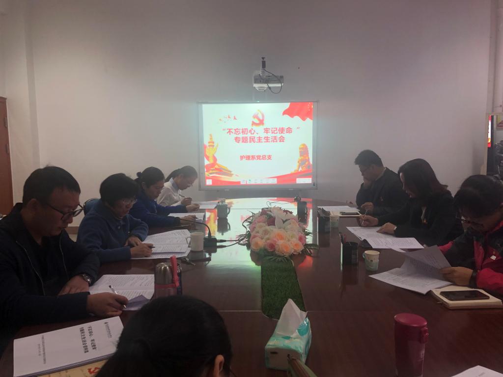 根據習近平總書記關于“不忘初心、牢記使命”主題教育重要講話和重要批示精神,按照《關于第二批主題教育單位開好“不忘初心、牢記使命”專題民主生活會的通知》(閩教組[2019]29號)和《關于印發<“不忘初心、牢記使命”專題民主生活會實施方案>的通知》(閩教組[2019]39號)等文件要求,護理系黨總支于2019年12月5日在護理系301會議室開展“不忘初心、牢記使命”專題民主生活會。護理系黨總支委員參加本次會議。學院第三巡回指導小組成員院黨委副書記李美華同志、管理系黨總支書記艾松軍同志、組織員張云霞同志出席會議。本次會議由護理系黨總支書記謝濤主持。