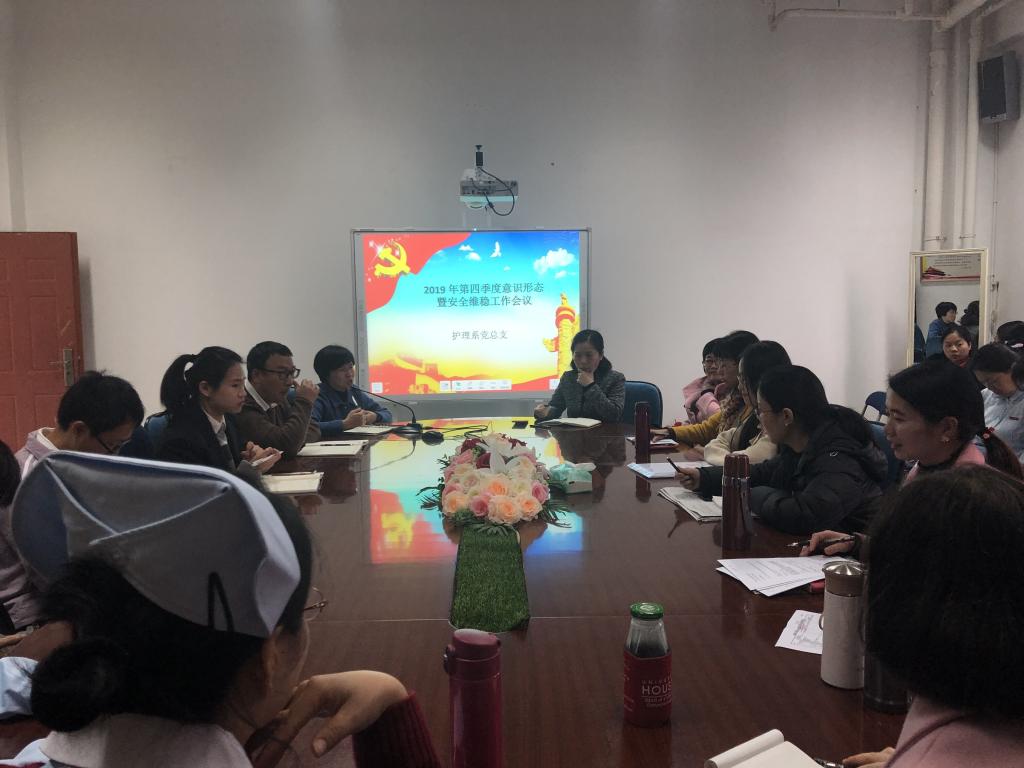 12月19日,我系第四季度意識形態暨安全維穩工作會議在護理系301會議室舉行。護理系黨總支謝濤書記主持會議,護理系全體教師參加會議。