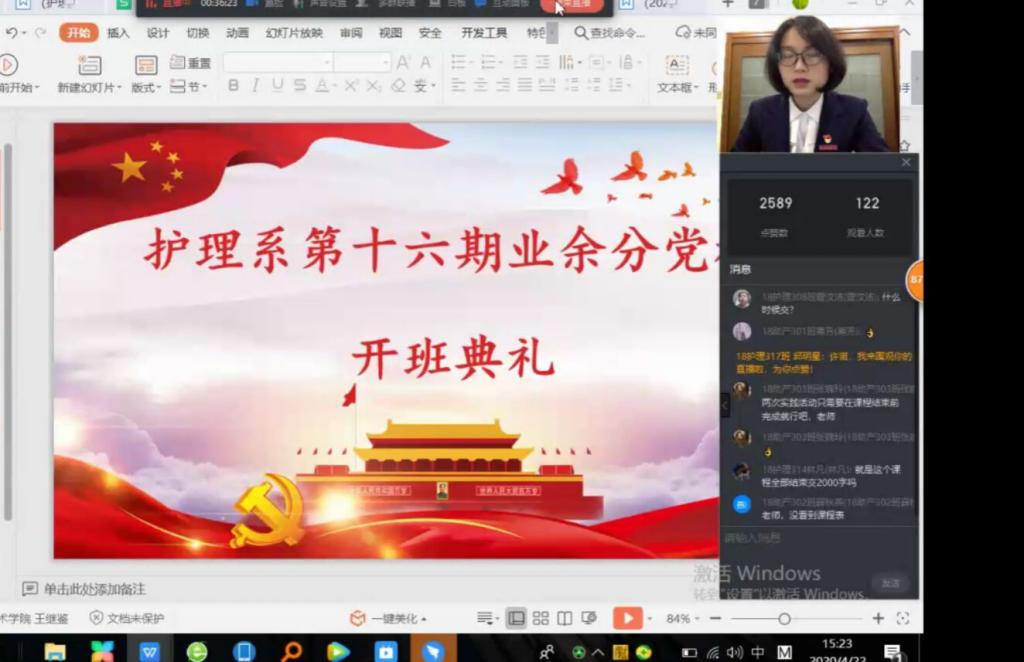 4月22日,護理系采用釘釘直播的方式舉行第16期分黨校開班儀式,組織員許慧瓊主持本次開班儀式,130名入黨積極分子參加本次開班儀式。受疫情影響,護理系第16期分黨校培訓部分課程采用網絡教學形式開展。