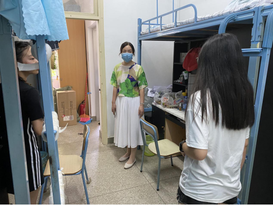 在深入學生宿舍過程中,李美華副書記向學生細致了解返校后生活狀況以及學生實習前崗前培訓情況,并詢問學生的有無需要學校解決的困難,并且對學生做好疫情防控進行了強調,叮囑同學們注意戴好口罩做好個人防護。