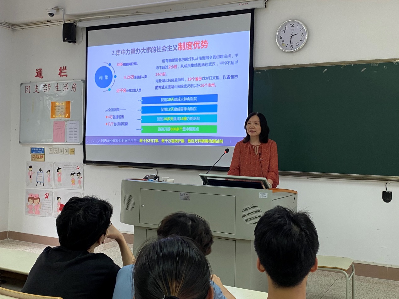 為深入學習貫徹習近平總書記關于疫情防控工作的系列重要講話精神,展現(xiàn)疫情期間體現(xiàn)出的中國精神。9月24日,我院黨委委員、副書記李美華在教學樓115為護理系師生講授“形勢與政策”課開學第一課。